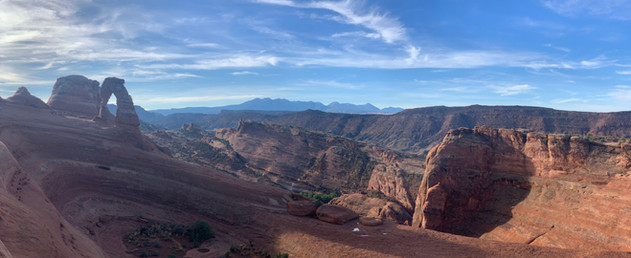 We first headed to Delicate Arches Trail. This hike is a 3.2 mile hike out and back and goes up to a 600 foot elevation - and the payoff was so worth it! This arch has an opening that is 32 feet wide and 46 feet hight. It's dramatic free-standing arch is all that remains of a thin fin sculpted by thousands of years of weathering.