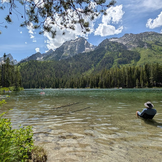 Aaron: Hiking Taggart Lake Loop trail, having the lake to ourselves!